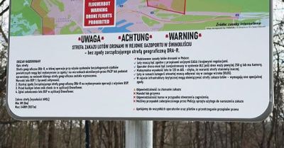 W Świnoujściu w newralgicznych punktach ustawiono tablice przypominające o zakazie lotów dronami w strefie terminalu LNG. To efekt współpracy...